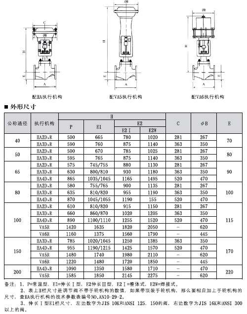 備注:該閥也可配用VAS和VP執(zhí)行機(jī)構(gòu)