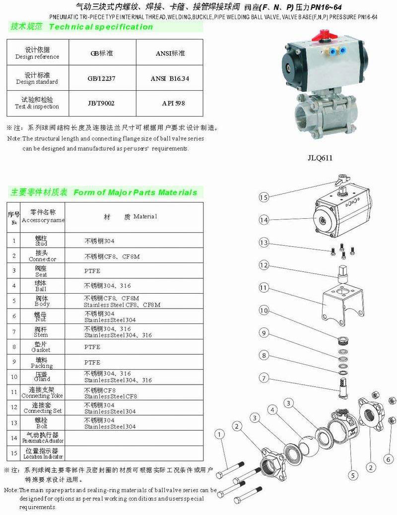 JLQ6氣動三塊式內(nèi)螺紋/焊接/卡箍/接管焊接球閥是我公司的優(yōu)質(zhì)產(chǎn)品之一,在上海JLQ6氣動三塊式內(nèi)螺紋/焊接/卡箍/接管焊接球閥廠家中享有極高的品質(zhì)聲譽與服務(wù)評價.