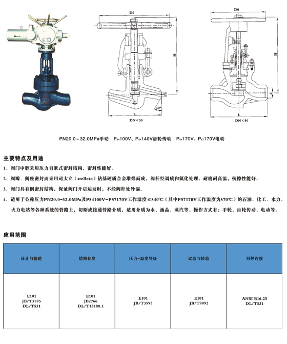 2、閥瓣、閥座的密封面采用司太立鈷基硬質(zhì)合金堆焊而成,耐磨、耐高溫,抗擦傷性能好、使用壽命長