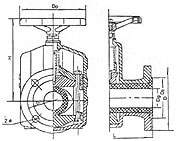 (1)結(jié)構(gòu):本閥門由左右閥體,橡膠管套、大小閥桿、上下閘板、導(dǎo)柱等零件組成。