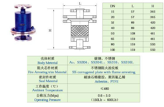 詳細(xì)說(shuō)明: 、 阻火器適用于儲(chǔ)存閃點(diǎn)低于28℃的甲類(lèi)油品和閃點(diǎn)低于28℃的乙類(lèi)油品,也適用于儲(chǔ)存物料以氮?dú)夥忭數(shù)墓绊敼奚,礫石阻火器與網(wǎng)型阻火器原理同上,用在管道上。 ②與呼吸閥、呼吸人孔配套使用,也可單獨(dú)使用。