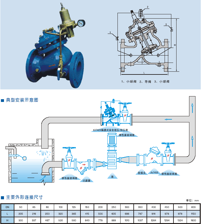 AX742X隔膜式安全泄壓/持壓閥是安裝在高層建筑、消防給水系統(tǒng)以及其它給水系統(tǒng)的管道上,當(dāng)給水管道中 壓力超過(guò)泄壓閥設(shè)定壓力時(shí),泄壓閥自動(dòng)開(kāi)啟快速泄壓,保護(hù)管線的安全,也可作持壓閥用,保障主閥上游的供水壓力。能準(zhǔn)確保持不邊的安全設(shè)定壓力,泄壓閥迅速打開(kāi),及時(shí)泄壓。關(guān)閉平穩(wěn)可靠,消除壓力余波。