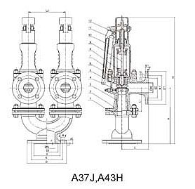 A38Y、A43H、A37H型安全閥除三通(材料為WCB)外,欺余零件的材料均和A47H、A48Y型彈簧式安全閥相同。
