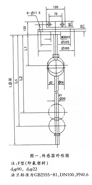 4、由于受鐵路運(yùn)輸?shù)南拗,大?m以上采取分段裝箱,安裝時(shí)由用戶自行焊接,焊接后需將焊縫銼平正,并做好水壓試驗(yàn)(壓力小于0.6MPa)確定不漏方可合使用,F(xiàn)型的傳感器還須將隨箱來的氟塑料套管套上并固定;或用戶自行解決運(yùn)輸問題。 |